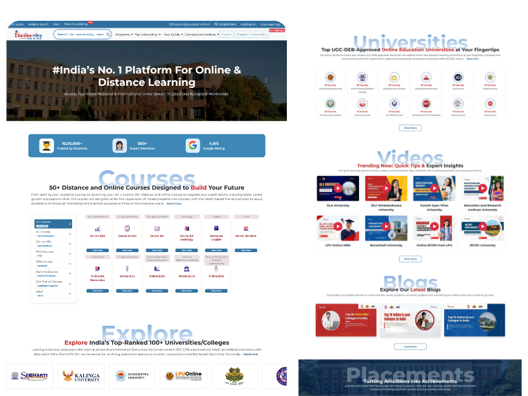 Education Mitra is a user-friendly search engine platform that offers a comprehensive database of Open and Distance Learning programs, free online guidance, and live counseling sessions. It helps students find the best universities for their careers by comparing affordability, employability, and academic reputation among various institutions. It also provides information on UGC-approved online/distance programs. The platform allows you to choose and compare among the 100+ UGC-DEB-approved universities and 70+ courses that fit your academic goal and budget.